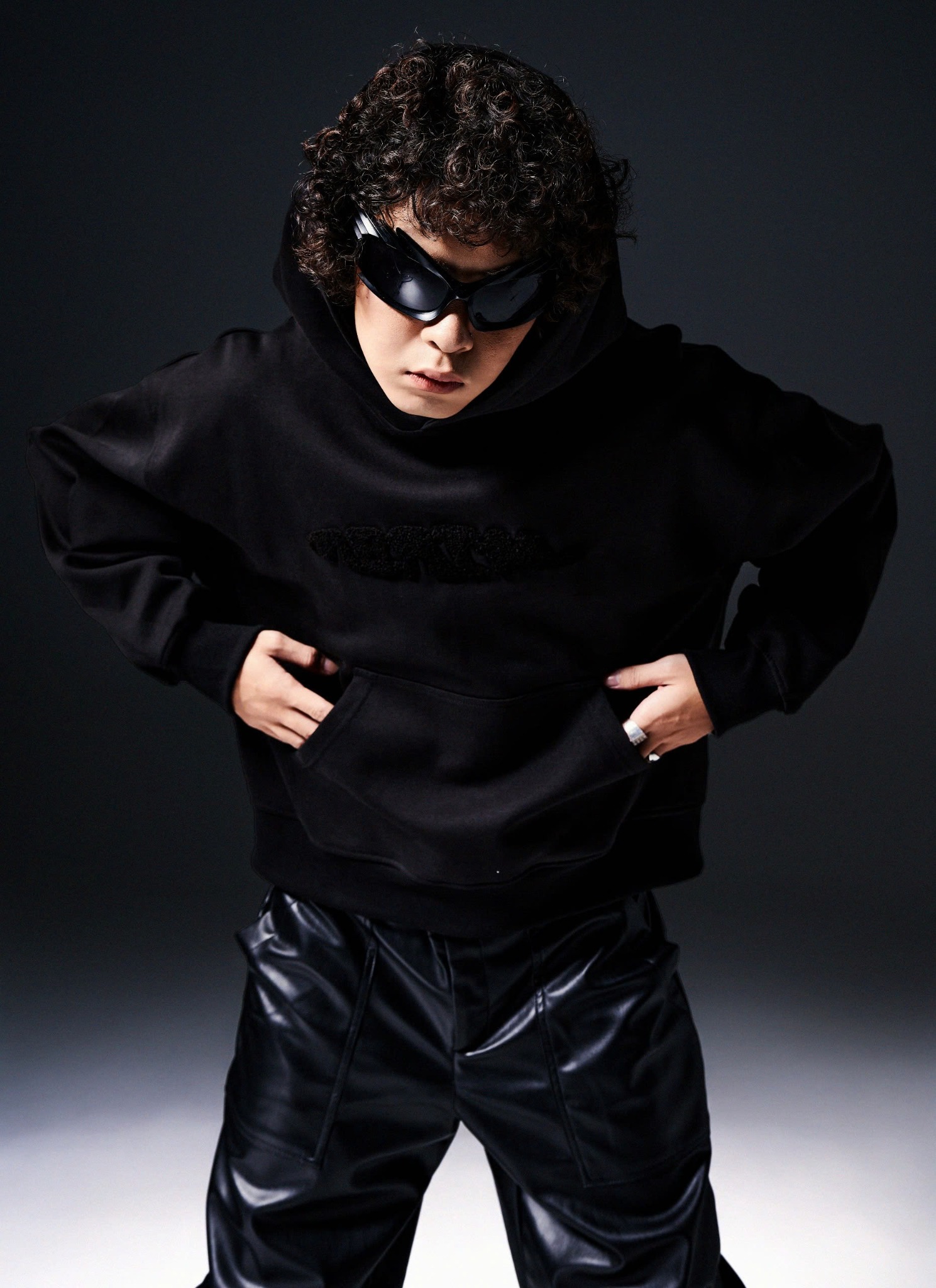 MENTAL RUFFLED EMBROIDERY OVAL BOXY HOODIE /BLACK/