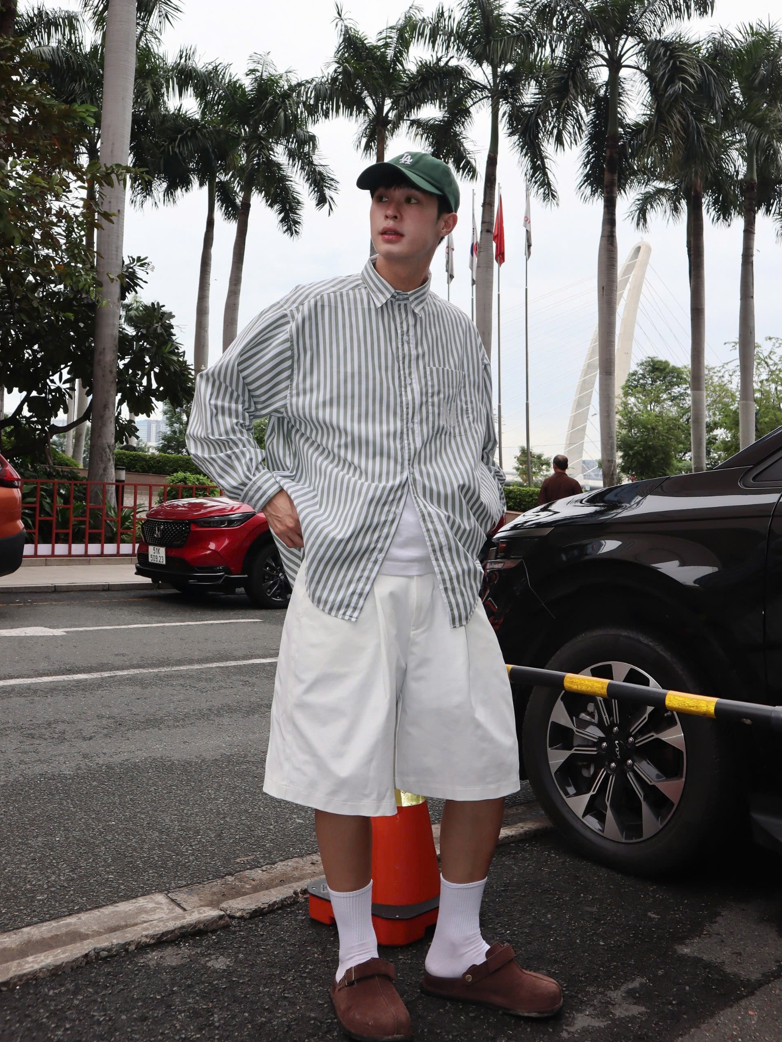 - Màu sắc xanh trắng thiết kế kẻ sọc bản vừa.